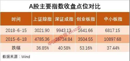 2015年6月18日牛市顶点区域至今,各主要指数跌幅均逾30%。