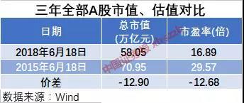 截至2018年6月18日,三年来A股总市值蒸发了12.9万亿元。目前工商银行A股市值为2.03万亿元,相当于蒸发了近6个半工商银行。