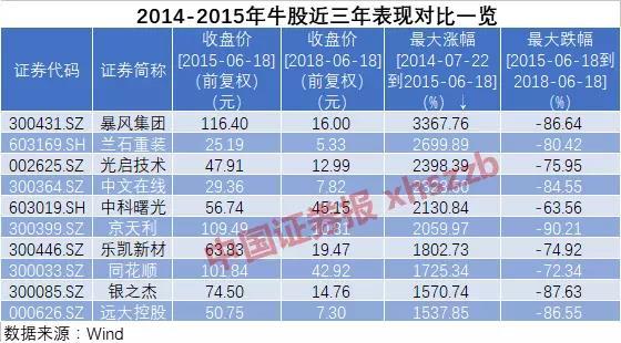 时隔三年,上述牛股均伴随市场回落而大幅回调。