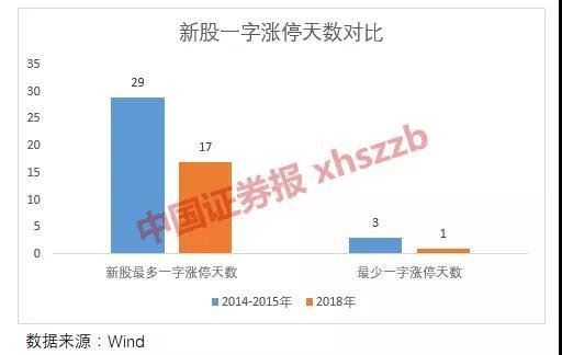2018年以来,新股一字板涨停天数最多的是彩讯股份、药明康德和天地数码,分别为17天、16天和16天;最低的是华宝股份、今创集团和养元饮品,仅上市首日涨停。