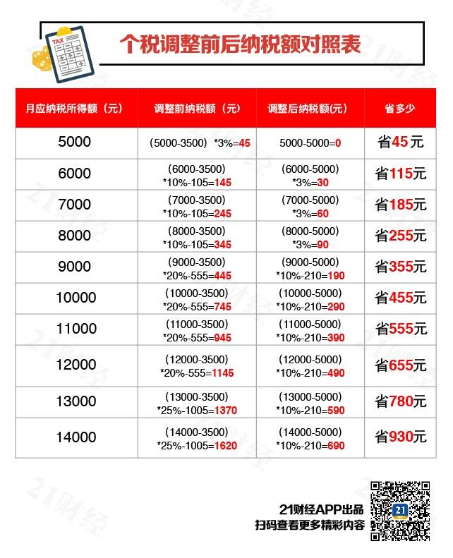 个税起征点由每月3500元提高至每月5000元(每年6万元);工资薪金、劳务报酬、稿酬和特许权使用费等四项劳动性所得首次实行综合征税;首次增加子女教育支出、继续教育支出、大病医疗支出、住房贷款利息和住房租金等专项附加扣除……一系列的重大修法举措与每个人休戚相关,一起来看看你少交多少税?