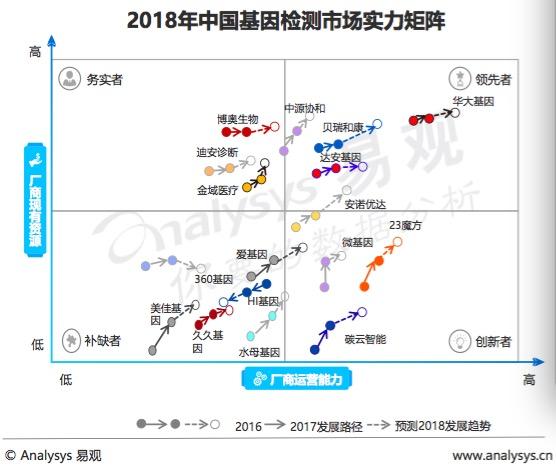 随着测序成本的降低,基因检测开始走进大众事业。近日,Analysys 易观发布了《中国基因检测行业分析2018》,具体阐述了中国基因检测市场现状、剖析了厂商的竞争格局,进而预判包括消费基因检测在内的中国基因检测市场趋势等。