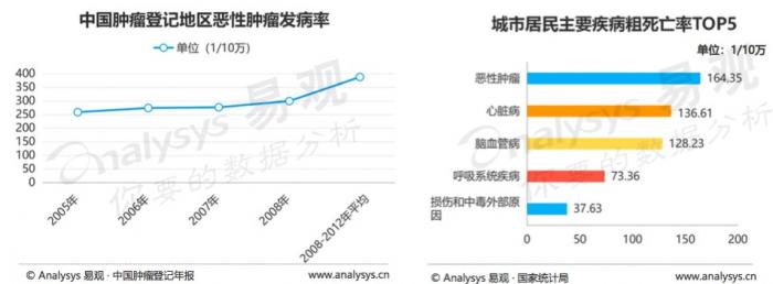 数据显示中国癌症发病率逐渐攀升,且恶性肿瘤致死率高,自2010年,恶性肿瘤已经超过心脑血管疾病,成为中国人群第一大死因。癌症成因复杂,一般认为是基因与环境共同作用的结果,随着环境的恶化,人类面临的癌症威胁将越发严重;由于癌症的发作具有非常鲜明的个性化特征,因而传统治疗存在很大局限。现阶段基因检测被认为可以在早癌筛查、癌症靶向治疗方面发挥作用,随着研究的深入将基因技术与癌症治疗结合的方向将成为攻克癌症问题的重要方向。