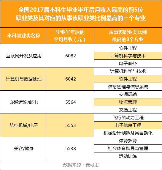 此外,“交通运输/邮电”“航空机械/电子”等行业,薪水也较高,毕业半年后在5500元以上。值得一提的是,近年来,“美容/健身”跃升至职业收入排行榜前五名!