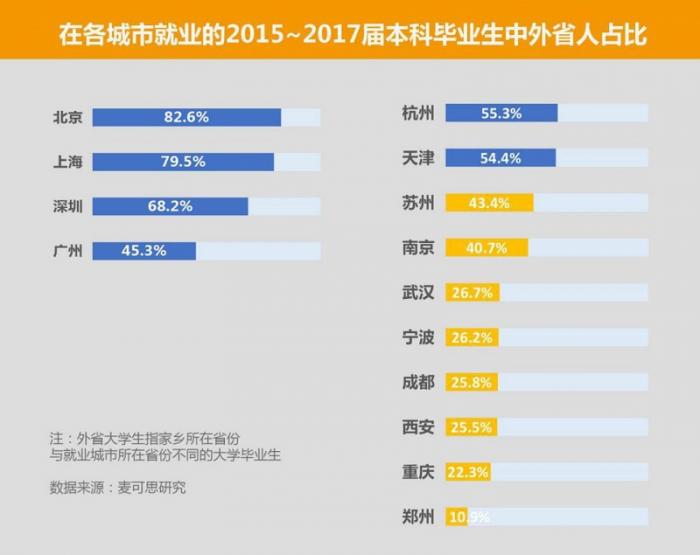 影响毕业生选择的,不仅仅是企业,城市之间的吸引力也左右着毕业生的选择。