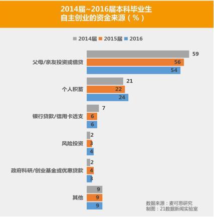 那么,创业的钱从哪里来?数据显示,毕业生自主创业的资金来源主要是父母/亲友投资或借贷(占比约50%),其次为“个人储蓄”(占比约20%)。也有部分创业资金来自风投和政府科研/创业基金等。