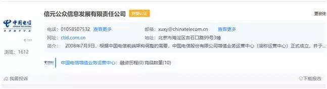 也就是说,同在中国电信集团有限公司旗下,信元发展与中国电信增值业务运营中心,就是“一套人马、两个班子”。信元发展属于一家法人独资有限责任公司。