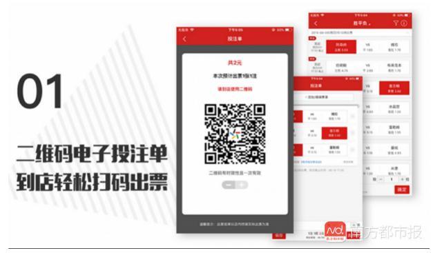 南都记者注意到,在这款大红色调的App上,彩民可以在线选择比赛、胜平负结果等系列步骤,即可生成一张电子投注单与对应的二维码。只是,目前这款在线APP也不提供“出售彩票”服务。这张电子投注单依旧需要通过直属或授权线下投注点扫码,才能完成“出票”服务。这也让App的便捷性大打折扣。