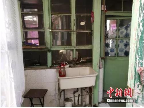 被拍卖的房屋是窗户朝北的一间,进门后只有一个简易洗手池,水龙头已经生锈,没有厕所和浴室。屋内光线很暗,有陈腐的气味,墙壁和地板布满黑斑,窗棱上的绿漆多处脱落。