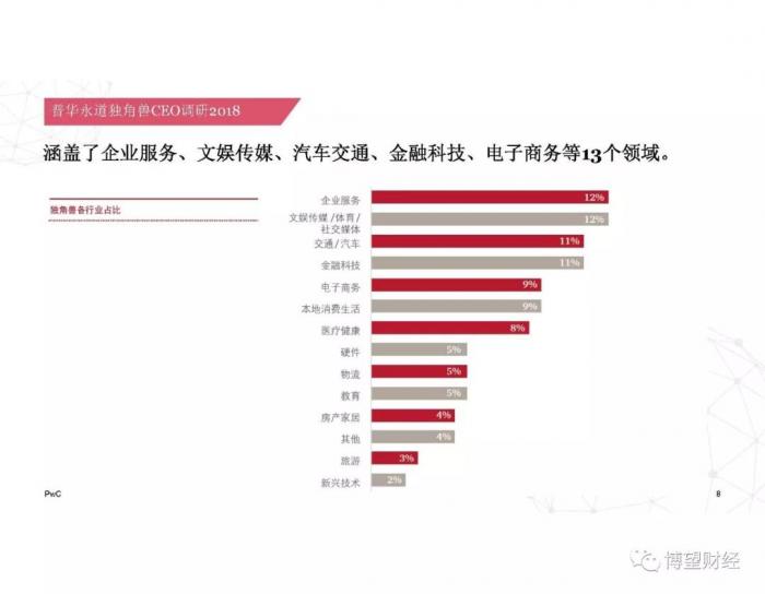 普华永道全球TMT行业主管合伙人周伟然表示:“中国潜力巨大的内需市场是其他经济体的独角兽可望而不可求的。平稳的宏观经济形势,及中国经济新旧动能转换的契机,给了中国独角兽得天独厚的发展空间。独角兽在除美国外的许多发达国家都屈指可数,而在中国蓬勃发展,未来三年更将迎来战略机遇期。企业要积极应对科技、人才、运营、融资等各方面的挑战,合理规避风险才能致胜于未来。借此调研的契机,我们深入了解中国独角兽企业的现状,并将持续关注他们的动态,并尝试在不远的未来勾勒出属于中国独角兽企业的成长之路。”