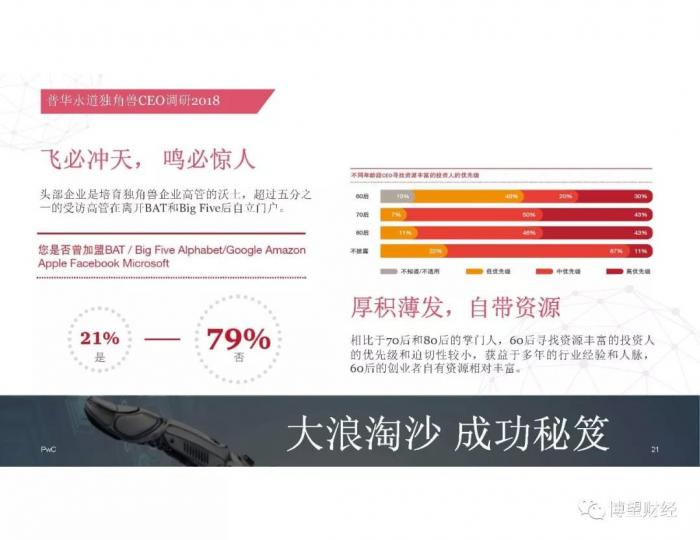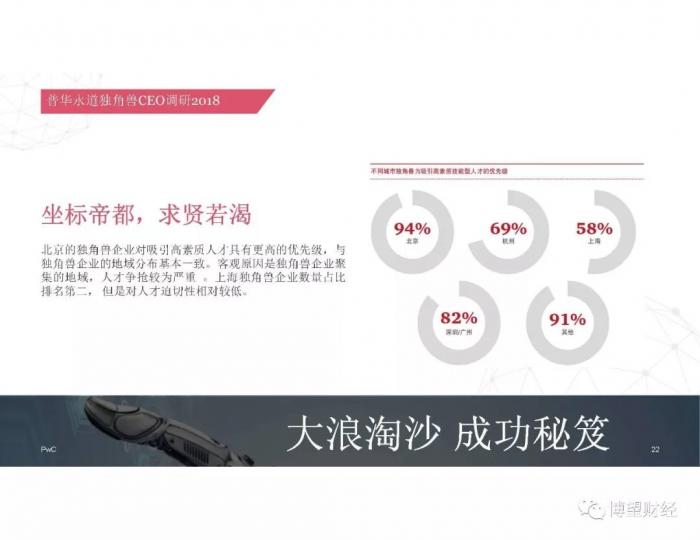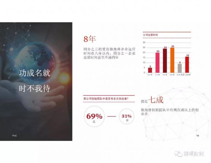 普华永道中国北京分所审计部合伙人及审计部民营企业客户组主管合伙人王崧表示:“独角兽企业更关注人才和企业文化等长期战略,反映出中国市场依旧处于高速发展期,独角兽可以从市场上获得较充裕的资本支持。此外,新生代员工是独角兽企业的重要优势之一,有助于推动内部企业家精神和激发创新思维,并且他们可能更乐于应对不断变化的环境。”