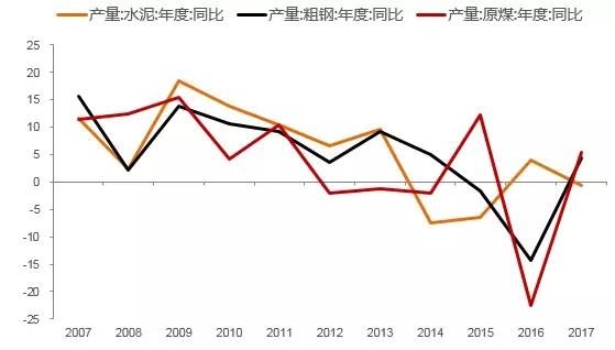 存量经济表现之三,就是这些年来煤炭、钢铁、水泥等大宗商品产量基本上都在走平甚至是负增长。这就意味着基建、房地产投资高增长不可持续。