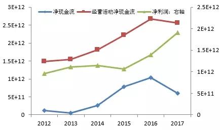 但另一方面,上市公司中的中小企业(指市值小于中位数)的日子不好过了,虽然盈利也在增长,但净现金流和经营性净现金流均下降,中小企业的现金流可能相当紧张。