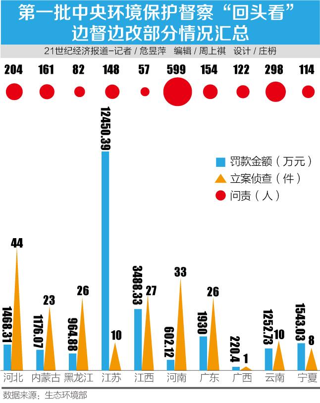 各被督察地方完成查处12409件,其中立案处罚2579家,罚款25096万元;立案侦查208件,拘留235人;约谈1065人,问责1939人。