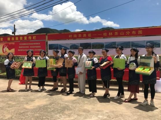 据义都镇镇长邹锦辉介绍,桂林村是一个具有红色基因的村,由于该村地势险峻,易守难攻,曾经成为广东人民抗日游击队东江纵队抗日战争的据点之一,村民们至今还保留着该村群众捐赠稻谷、枪支给东江纵队的收据。此外,该村具有1560多年的皋卢茶(苦丁茶)种植历史,拥有多棵百年老茶树。由于种茶历史悠久,村党支部和精准扶贫工作队充分利用茶资源优势,开启了产业扶贫、科技脱贫之路。