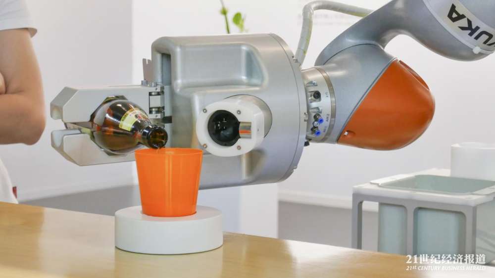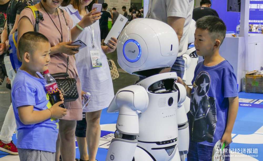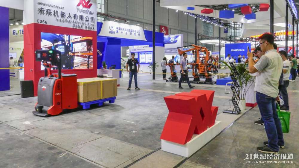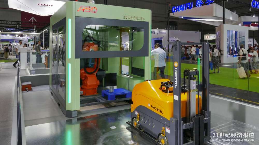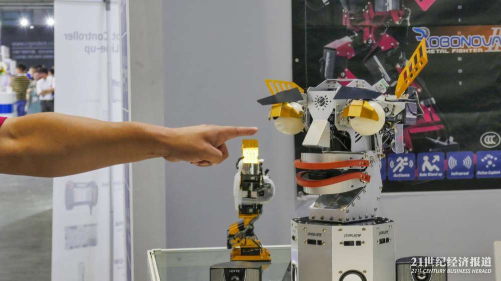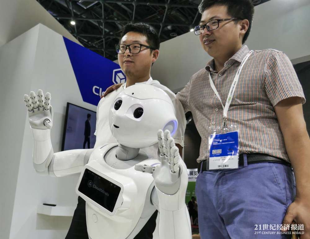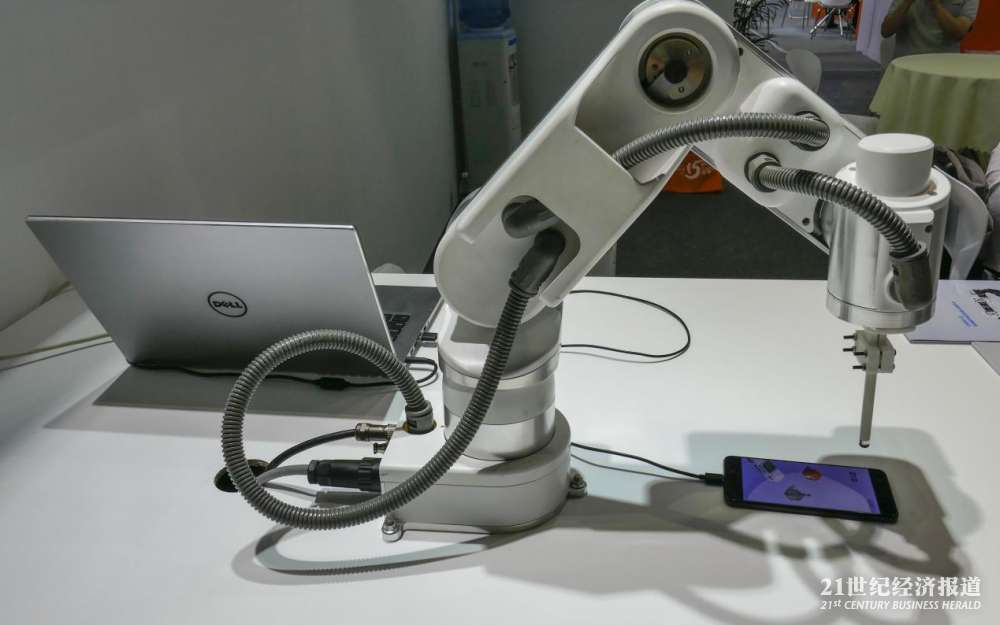 观众观察车床机器人如何工作。 据悉,今年国家统计局公布的行业数字来看,行业景气度较高,今年以来,中国工业机器人产量持续增长,3月份增速在35%左右。而据中国机器人产业联盟今年6月对会员展开的问卷调查表明,38.7%的被调查企业认为,2018年全年销量同比增速将超过20%,而超过29%的企业认为,未来三年,预期销售增速将超过20%。
