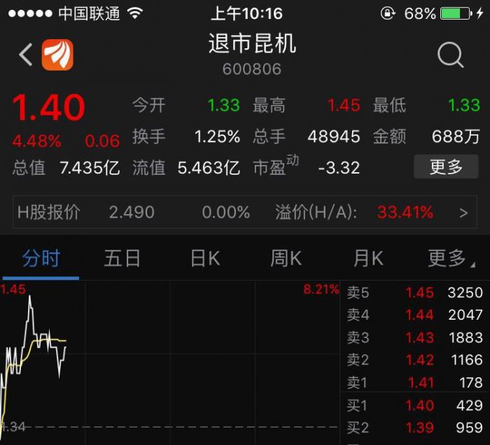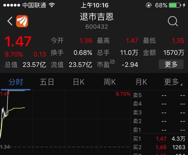 7月9日早盘,退市股上演末日狂欢,退市吉恩封涨停,退市昆机大涨5%。