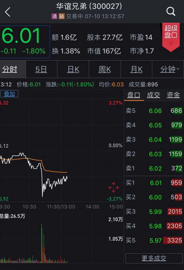 受上述消息影响,华谊兄弟股价出现大幅波动,盘中最大跌幅一度接近3%,截止21世纪经济报道记者发稿, 华谊兄弟股价收于6.01,下跌1.80%。