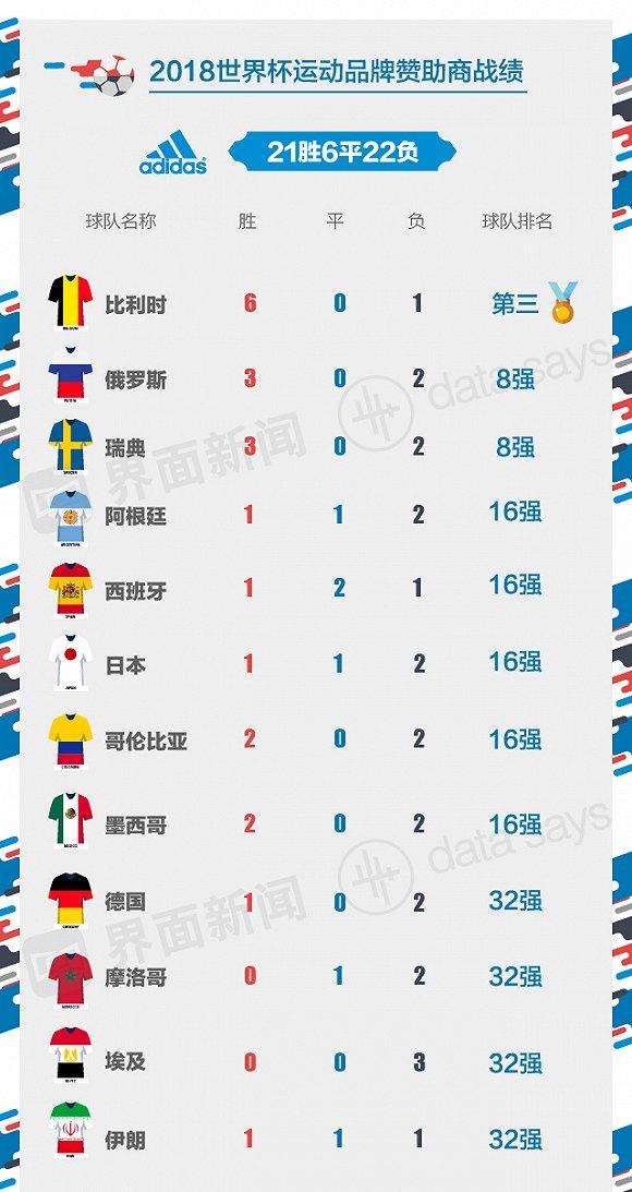 世界杯赞助商战绩PK:阿迪惨败,华帝、耐克成最大赢家