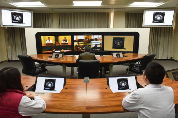 一块大屏幕上呈现着患者病灶的影像资料,旁边则有四个视频窗口,分别为同济医院、红安县人民医院、湖北省荣军医院和大冶市人民医院的医生。针对这一比较复杂和特殊的病例,同济医院的专家正通过视频的方式与基层医院医生进行沟通。