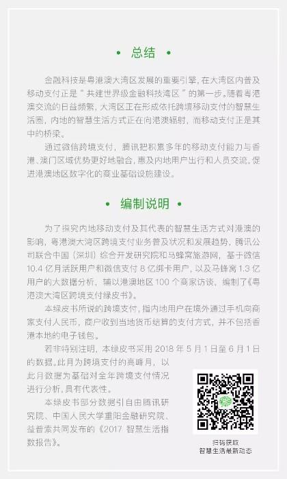 绿皮书由腾讯联合中国(深圳)综合开发研究院和马蜂窝旅游网共同编制,旨在探究内地移动支付对港澳的影响,以及粤港澳大湾区跨境移动支付现状和发展趋势。