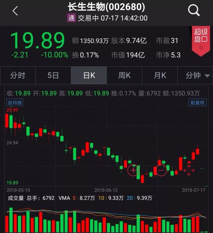 继昨日一字跌停后,长生生物今日开盘再度跌停,报19.89元,下跌2.21元,截至发稿时,卖单仍超87万手。今日早间多家基金下调长生生物估值,安信基金估值价格调整为16.11元,距离当前股价还有2个跌停。