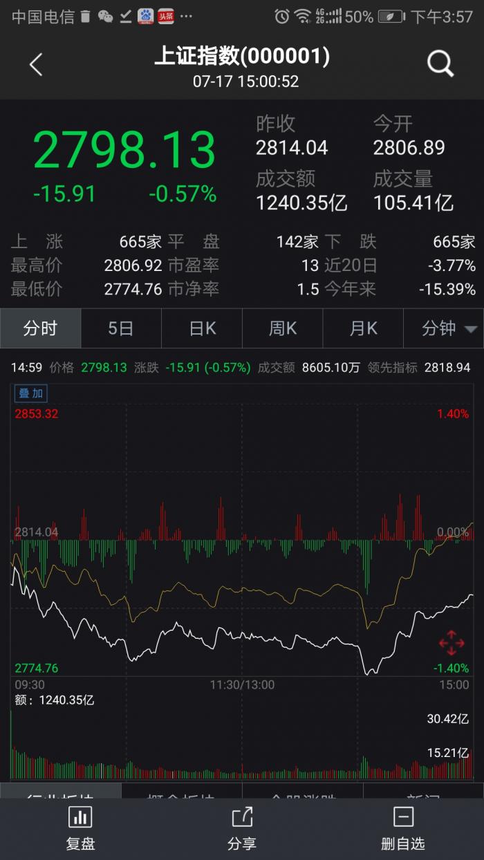 7月17日,沪指再度失守2800点,当日盘中一度跌到2774.76点。尾盘时5G板块、汽车、元器件、通信设备等强力拉动下,上证指数收于2798.13点,两市涨幅超5%个股达到124家。