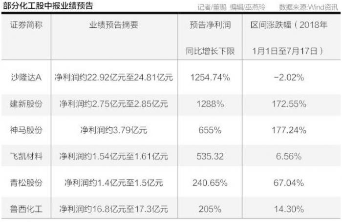 二级市场强势的背后,在于化工行业较好的业绩表现,据wind数据统计,6月至今,共有141家化工股披露中报预告,其中72%的公司实现同比增长。