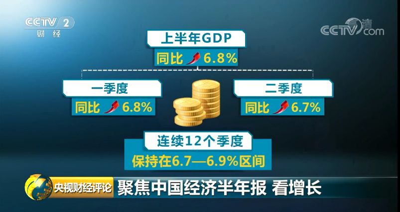 2018年上半年GDP同比增长6.8%。其中,一季度增长6.8%,二季度增长6.7%,连续12个季度保持在6.7—6.9%的区间。