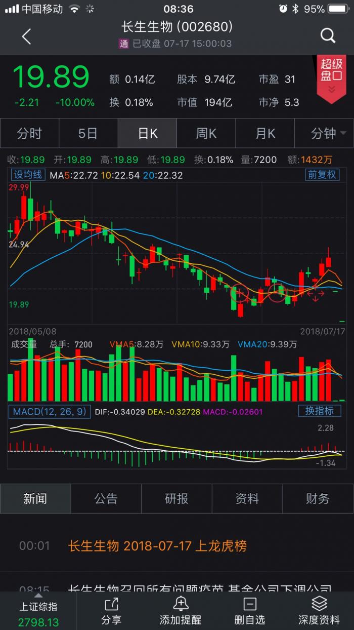 7月18日早间,深陷“狂犬疫苗造假”的长生生物(002680.SZ)发布公告称,由于对有效期内所有批次的冻干人用狂犬病疫苗全部实施召回,将减少上半年净利约1.4亿元;此次冻干人用狂犬病疫苗停产将减少下半年营收约5.4亿元。