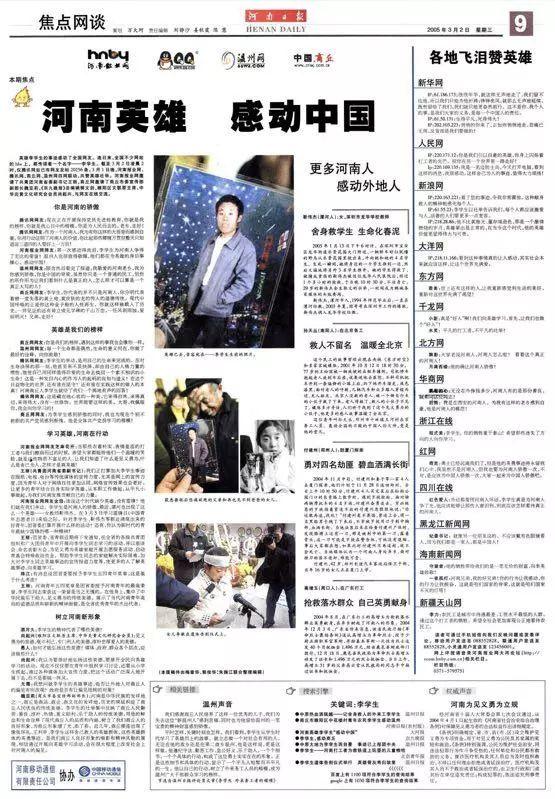 当日的《河南日报》“焦点网谈”版以整版的篇幅,刊发了3月1日晚河南报业网联合腾讯网、商丘网、温州网的网络访谈,以及人民网、新浪网、东方网、大洋网、浙江在线、海南新闻网、新疆天山网等网友的跟帖评论。