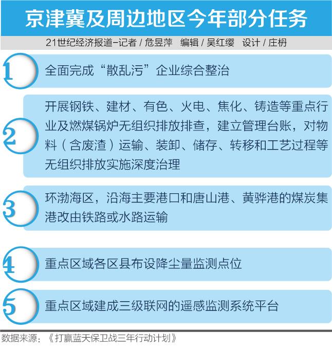 根据国务院印发的《打赢蓝天保卫战三年行动计划》(下称《三年行动计划》),今年起至2020年,京津冀及周边地区依旧是大气污染防治行动重点区域。
