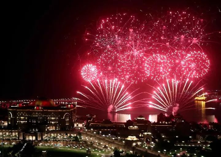 习近平主席抵达之日,欢迎焰火点亮阿布扎比夜空↓