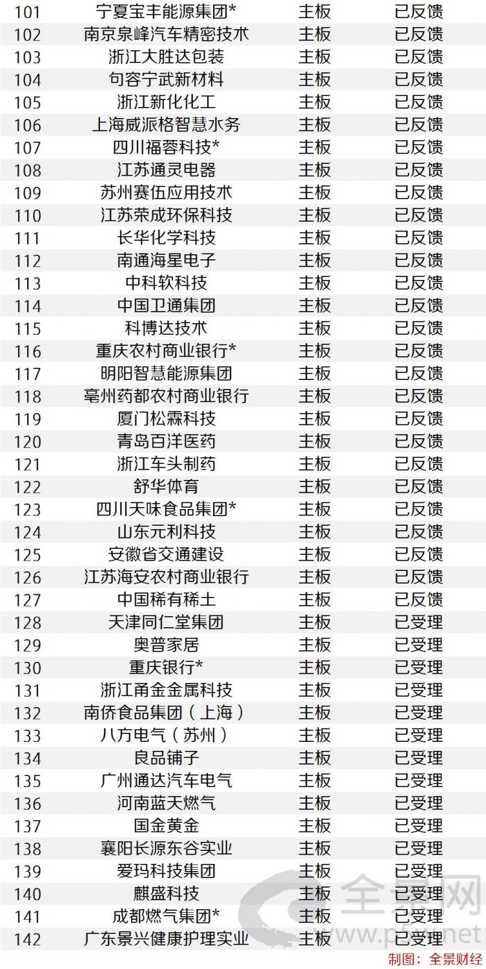 312家证监会受理的首发企业中,正常审核企业306家,其中主板142家、中小板54家、创业板110家。另有6家企业中止审查。