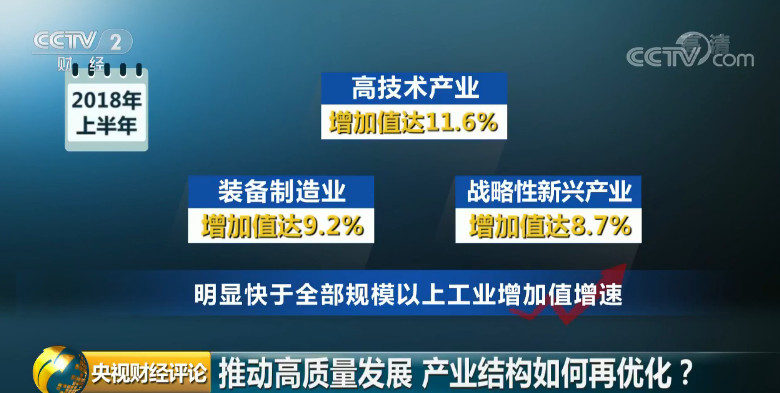 推出第五评——看结构。邀请中国国际经济交流中心首席研究员张燕生、央广财经评论员王冠做客演播室,深入分析上半年中国经济产业结构优化表现在哪里?传统产业改造升级变化在哪里?推动高质量发展产业结构如何再优化?