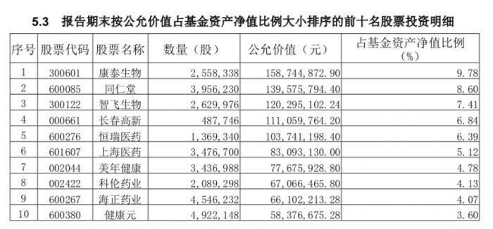 譬如富国医疗保健行业混合基金,二季报数据显示: