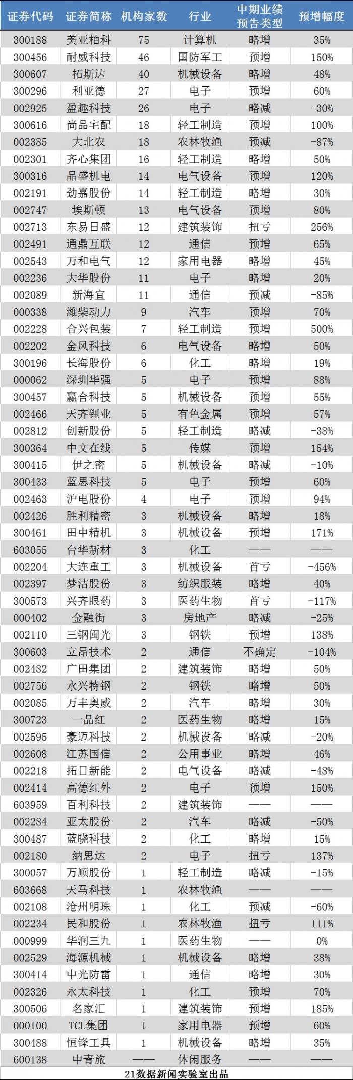 在机构本周调研的这61家公司中,56家发布了中期业绩预告,预喜的占比75%,其中合兴包装上修业绩预增幅度至450%—500%,6月以来股价已累计上涨43%。