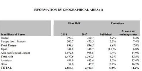 法国以外的欧洲市场同比增长7.4%,法国同比增长8.2%,欧洲总体增长7.8%;