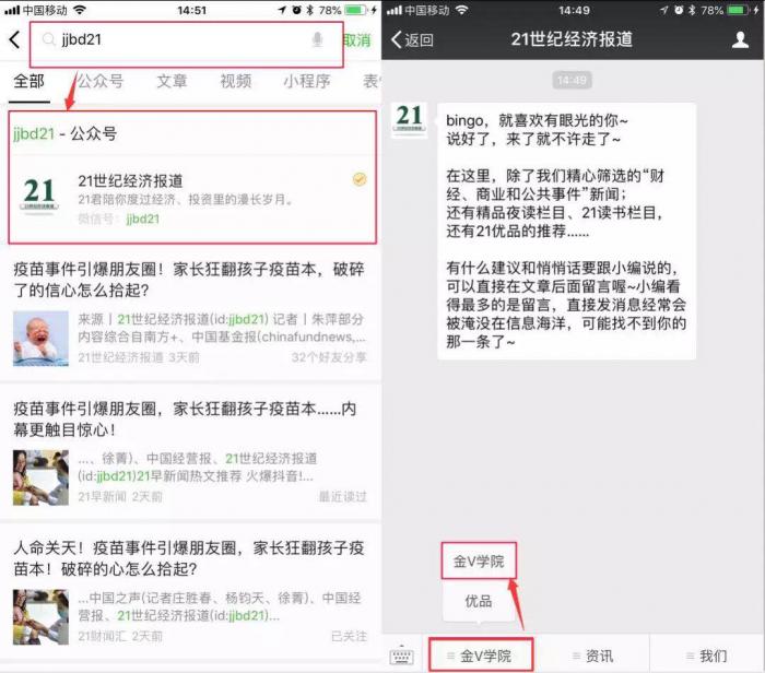 1、关注微信公众号“21世纪经济报道”(微信号:jjbd21);