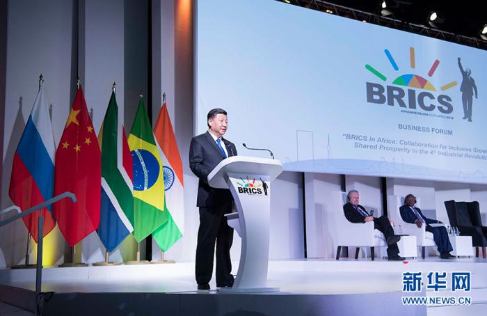 7月25日,国家主席习近平应邀出席在南非约翰内斯堡举行的金砖国家工商论坛,并发表题为《顺应时代潮流 实现共同发展》的重要讲话。新华社记者王晔摄
