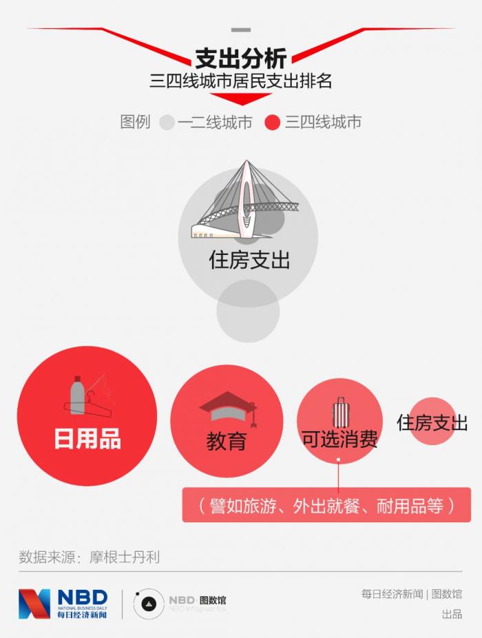 摩根史丹利调研团队去年下半年曾开展了逾3300份居民调查,结果显示,住房支出是一二线城市居民的头号支出,但在三四线城市仅排在第四位。