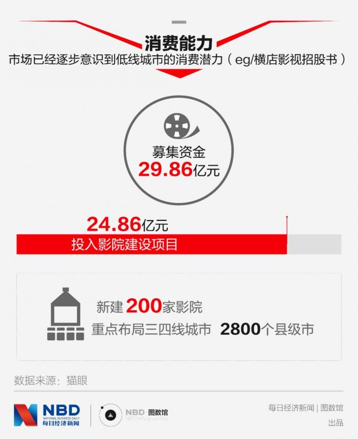 市场已经逐步意识到低线城市的消费潜力。以去年上市的横店影视为例,其招股说明书显示,计划重点布局三四线城市的2800个县级市。除了横店影视,万达也在近些年重点布局三四线城市。