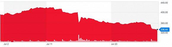 随后,Facebook一份让市场大失所望的财报发布,成为压垮市场的最后一根稻草,这家社交巨头第二季度营业收入自2015年以来首次不及预期,此外,用户增长、广告收入增长等关键指标也均低于预期,再度引起投资者恐慌性抛售,股价下挫超过20%,市值蒸发超过1200亿美元,创下了美股历史上单个交易日股价下跌造成市值损失的最大记录。
