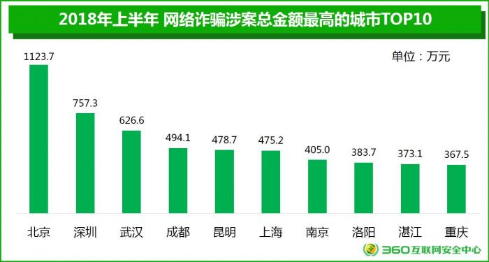 据《报告》显示,举报量最多的城市依次为北京、深圳、广州、上海,“北上广深”齐齐中枪。从各城市网络诈骗涉案总金额来看,北京再次以1123.7万元位居榜首,其主要举报虚假兼职诈骗较多。