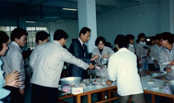回想1988年他刚到深圳创办工厂时,一个农民工的月薪180元左右,而郭台铭定出了给员工每月240元的伙食费标准,这在当时是全中国最高的,还坚持每天给员工配备一个鸡蛋,每周配备一个鸡腿。郭台铭的考虑是,当时大部分是女工,每个女工都是或将是一位妈妈,如果她们吃好了,那希望生出来的孩子也更健康。他回想,刚进来内地的十几年,每年过年都会与员工一起聚餐,一桌桌给每位员工敬酒,至今依然怀念那个时候。