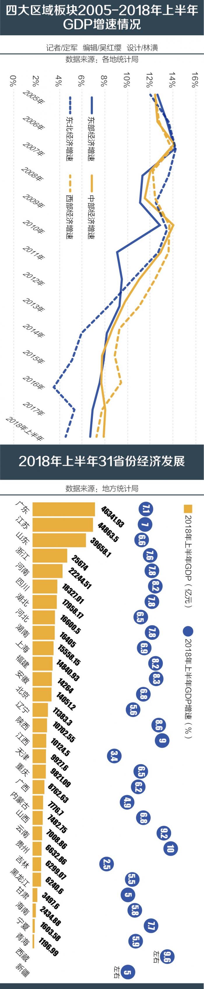 在很长时期内,各个区域板块都有经济下行压力。南开大学经济与社会发展研究院教授刘秉镰认为, 东部地区外向型经济占比高,近来受贸易保护主义、单边贸易政策影响,靠劳动密集和资本密集拉动外向型经济的模式受到冲击,现在需要加快创新驱动。另外,东部各省面临结构调整问题,西部产业目前还是传统产业的居多,也有结构调整上的压力,而中部产业也正在经历新一轮调整。