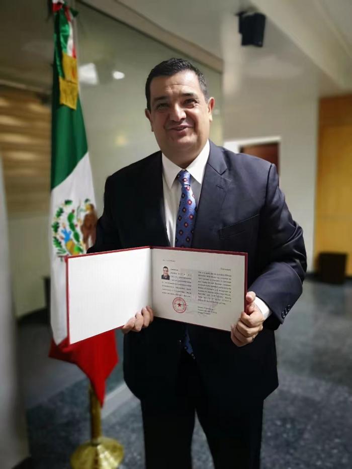 蒂华纳市政府经济发展局局长一见面就拿出去年在中国商务部国际商务官员研修学院的结业证书。