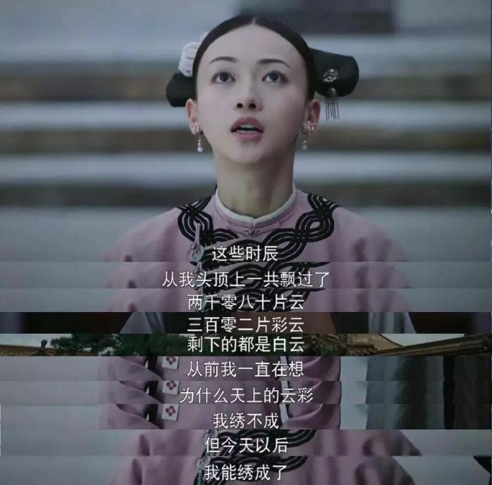 有次璎珞因为说了不该说的话,被罚跪了一天一夜,她不抱怨也不觉得委屈,而是全程都在观察云的变化, 甚至她在跪的过程中想好了怎么绣。