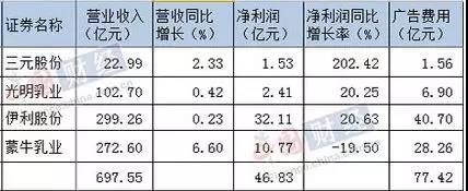 四家知名乳业企业净利润和广告费对比