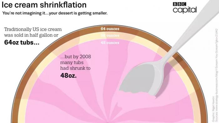 比如,冰激凌在不停地“瘦身”: